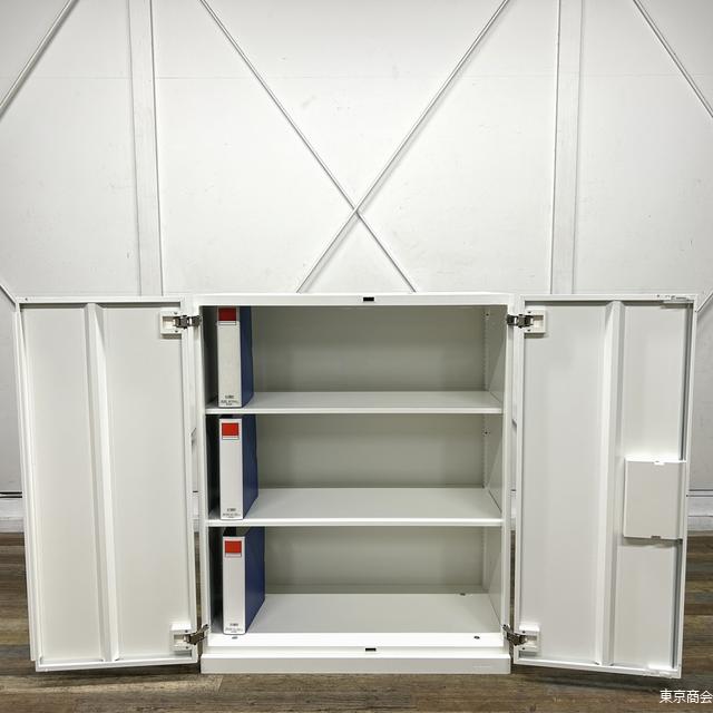 オカムラ「レクトライン」シリーズの両開き書庫、ネオホワイト仕様。 シリンダー錠付きでセキュリティ性が高く、機密書類の管理に最適。 シンプルで清潔感のあるデザインで、オフィス全体に調和する定番書庫。 |