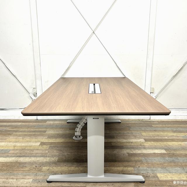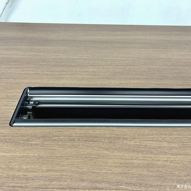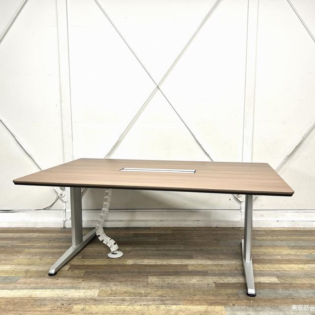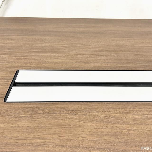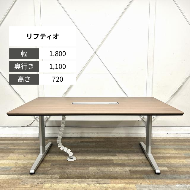 オカムラのLiftio(リフティオ)シリーズのテーブルです。 一般的なテーブルと比較して奥行きがあり、中央にある配線カバーの下にはコードを受け止めるボックスも設置されているためPCやプロジェクタなどを複数の機器を用いるようなシーンでも活躍してくれます。 |