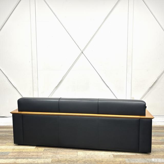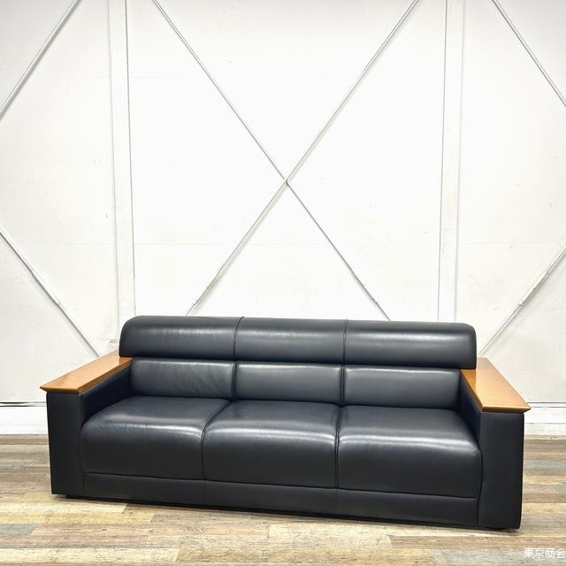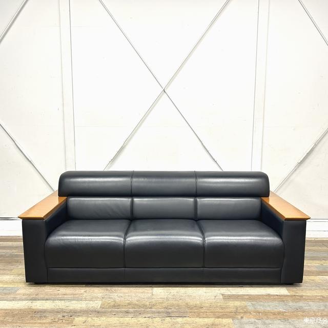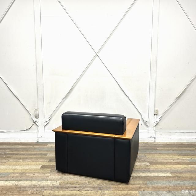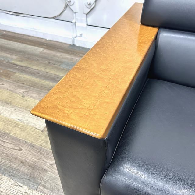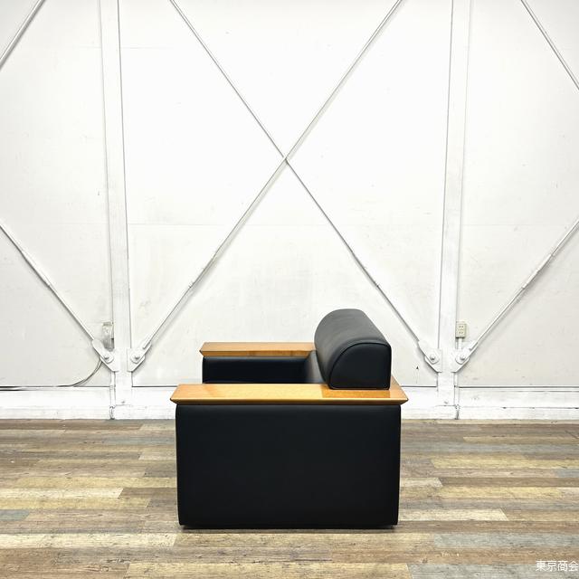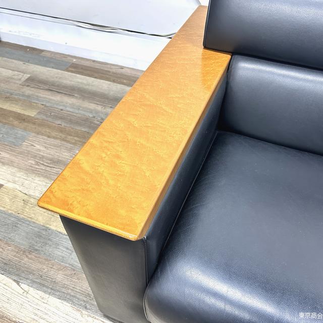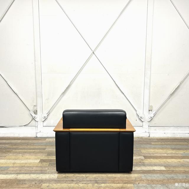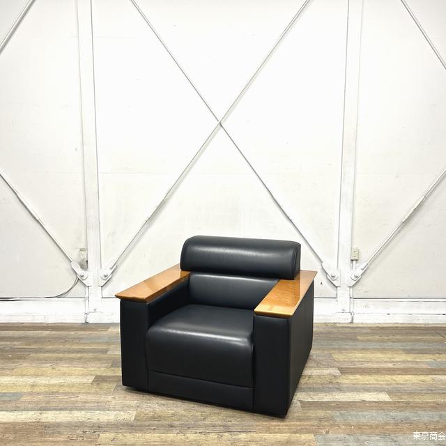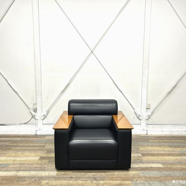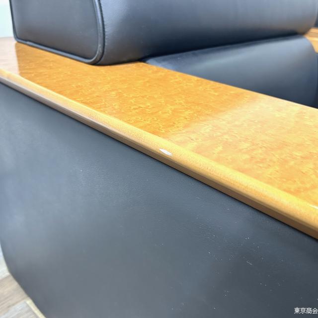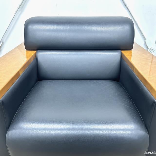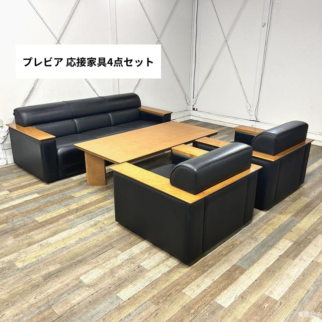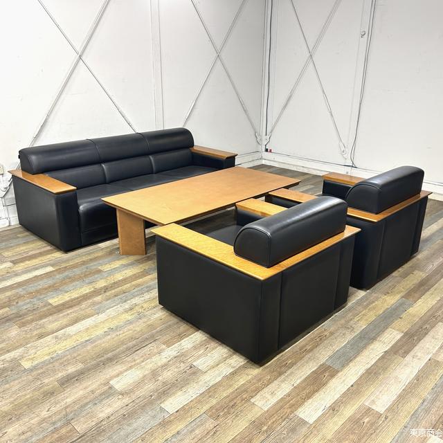 オカムラ「プレビア」シリーズの応接4点セット(長椅子・安楽椅子×2・センターテーブル)。 上質で落ち着いたデザインが来客対応スペースを品良く演出。 |
