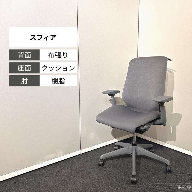 オカムラの身体の動きに寄り添う「スフィア」独自のフィット構造で長時間作業も快適。 ハイバック&可動肘に加え、ハンガー付きでオフィスワークをしっかりサポート。 落ち着いたダークグレーが空間になじむ洗練デザイン。 |
