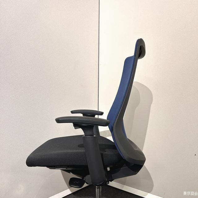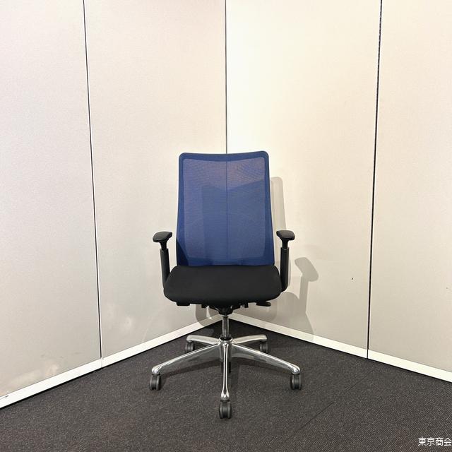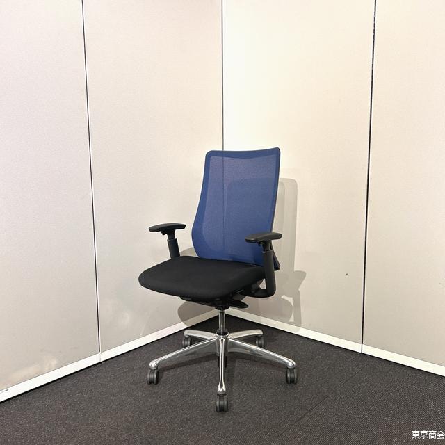 オカムラ「フルーエント」シリーズのハイバックオフィスチェア、ミディアムブルー×ブラック。 可動肘付きで長時間作業も快適、体にフィットする座り心地。 ポリッシュ脚部の高級感あるデザインで、オフィス空間に映える一脚。 |