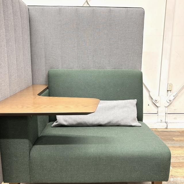 コクヨ「インターバル」シリーズのパーソナルブース。 ダークグリーン×ライトグレーの落ち着いた配色で集中できるワーク空間を確保。 オフィスのフリーアドレスや個別作業スペースに最適な集中ブース。 |