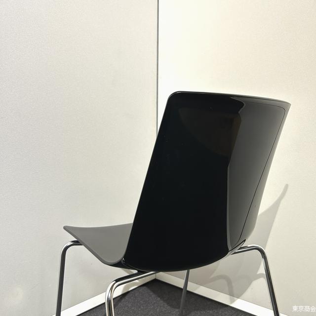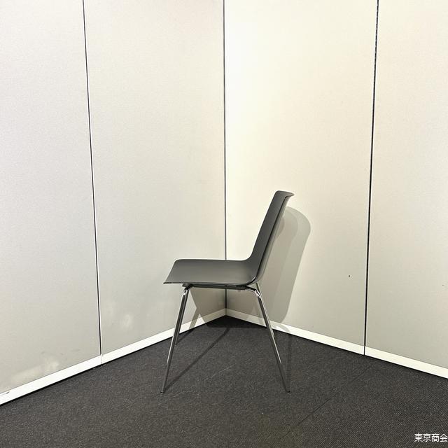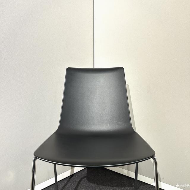 オカムラ「リンケージ」シリーズのミーティングチェア、スタッキング可能な4本脚タイプ。 ブラックシート×クローム脚の組み合わせで、会議室やセミナーに最適な落ち着いたデザイン。 軽量で扱いやすく、片付け・収納もスムーズに行える機能的なチェア。 |