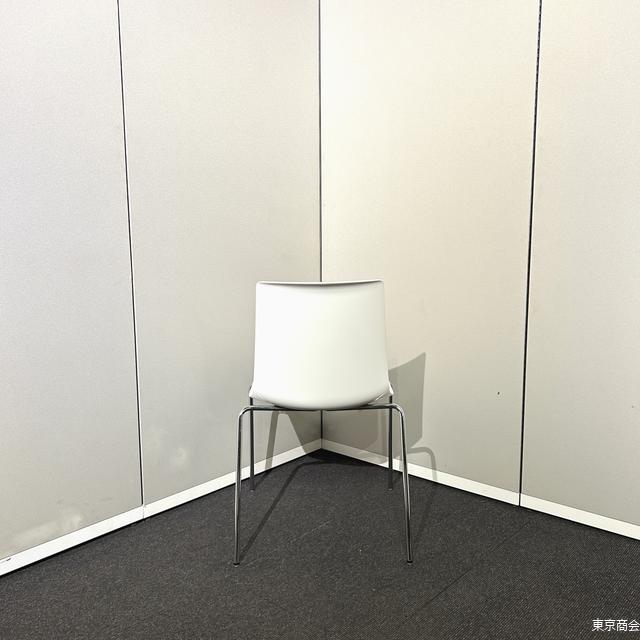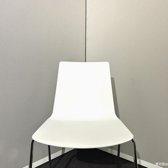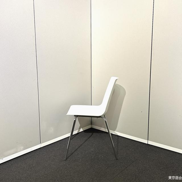 オカムラ「リンケージ」シリーズのミーティングチェア、スタッキング可能な4本脚タイプ。 ホワイト×クローム脚で軽やかかつ上質な印象。 会議室・セミナー・来客スペースなど多用途に使える定番モデル。 |
