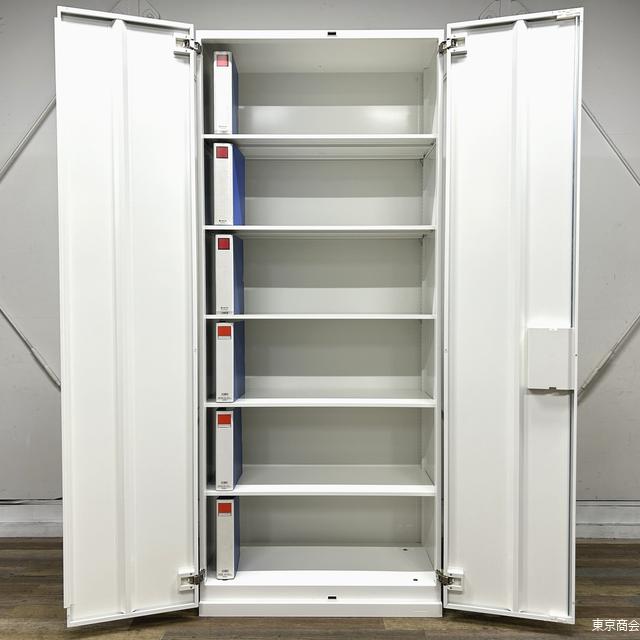 オカムラ「レクトライン」シリーズの両開き書庫。 フラットヒンジ+シリンダー錠付きで、見た目すっきり&セキュリティに配慮。 ネオホワイトカラーでオフィスに統一感をもたらす収納キャビネット。 |