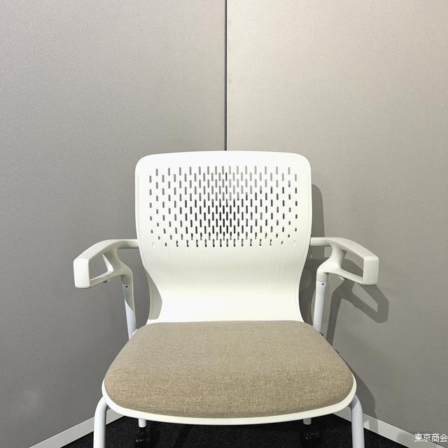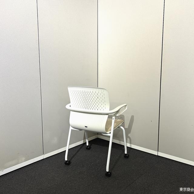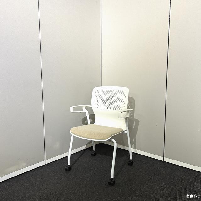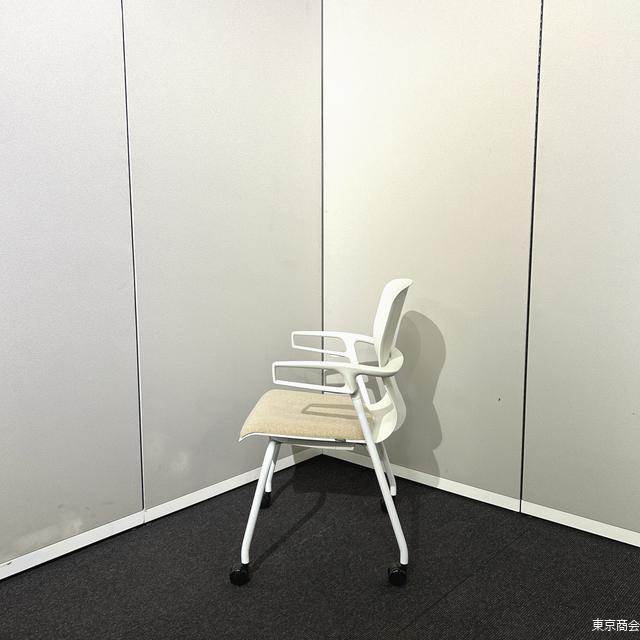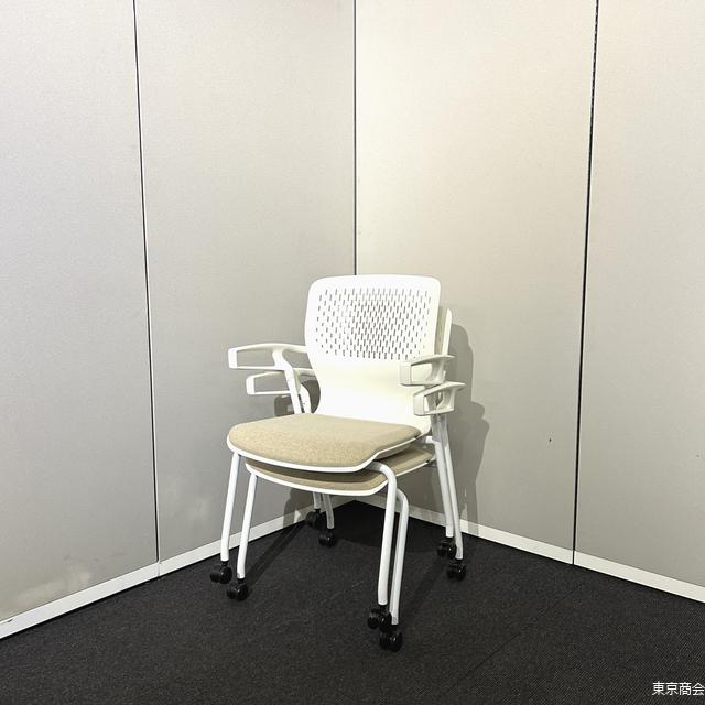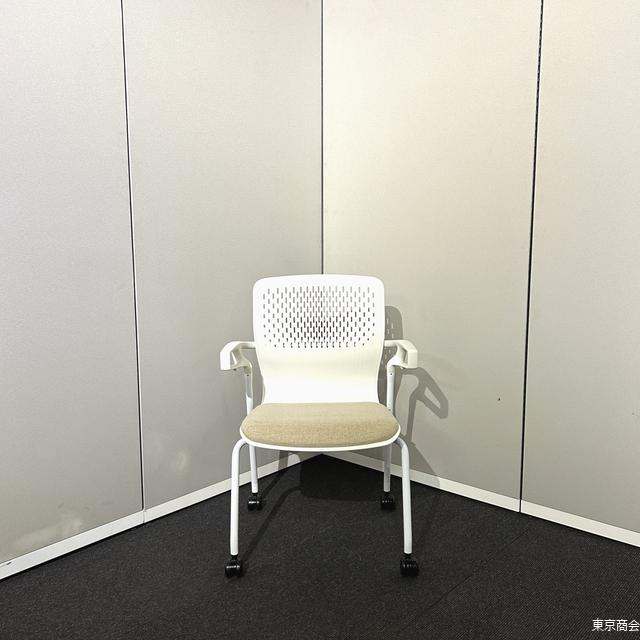 内田洋行 ミーティングチェア カゼトラ スタッキング 固定肘 キャスター脚 ホワイト パーチメントベージュ 6-118-1124