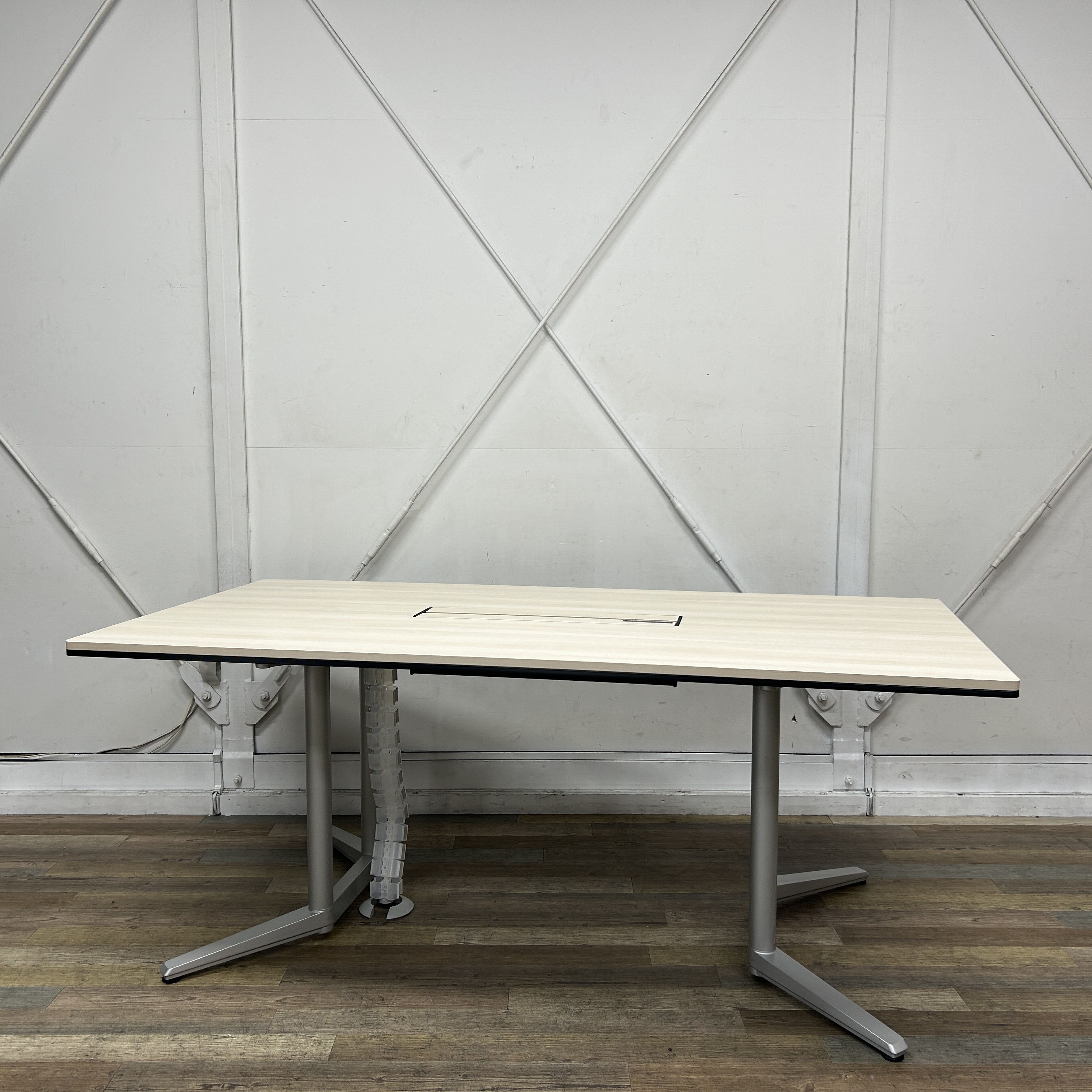 オカムラ「ラティオ」シリーズのミーティングテーブル。 プライズウッドライト×シルバーで上質かつ落ち着いたデザイン。 会議室・打合せスペース・商談エリアなど幅広いシーンに最適な定番モデル。 |