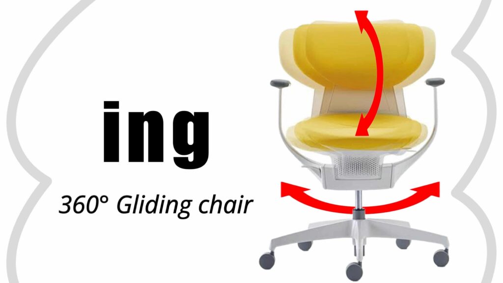 -ing(イング)の最大の特徴で、座面が前後・左右・斜めに360度自由に動く仕組みです。