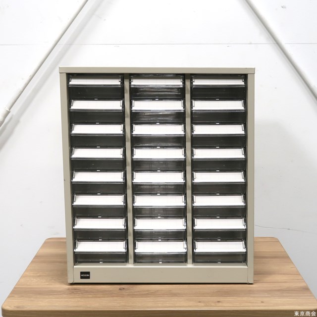 | 仕様 | [ サイズ ] ・本体:W350×D245×H405[mm] ・トレー内寸:W94×D212×H39[mm] [ カラー ] ・グレー [ 材質 ] ・本体:スチール ・トレー:樹脂成型品 [ 機能 ] ・各トレー仕切り板2枚付属 |