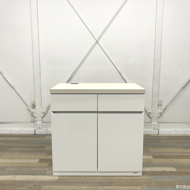オカムラ製アルトピアッツァシリーズのカフェキャビネットが入荷しました。 天板にはコンセントが2口設置されており、ポットやコーヒーサーバーなどの設置が可能となっています。 収納部も使用頻度の高い消耗品を仕舞うのに便利な上段の引き出しに加え、備蓄品を置いておける大型の両開き下部収納を備えています。 |