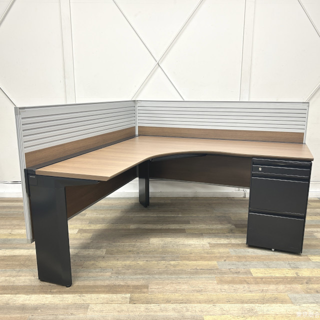オカムラ製プロステージのL字型デスクです。 手元までしっかり隠してくれる大型のパネル、A4サイズのファイルが収納できる引き出し、充実の配線機能とエグゼクティブな空間におすすめの大型執務デスクです。 |