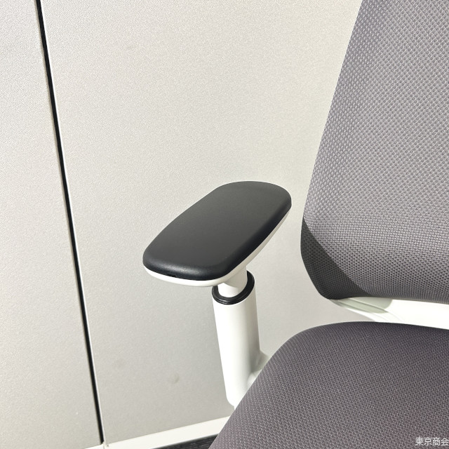 内田洋行のオフィスチェア、ニンバスです。 腰の高さで大きく前方にせり出したフレームが腰部を支えつつ、上に行くにしたがってスリムになっていくシルエットは肩や腕の動作を邪魔しないような設計になっています。 |
