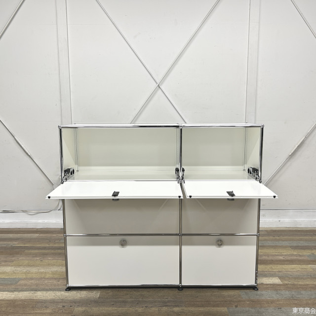 USMの代名詞であるモジュール式キャビネットシステム、USMハラーシリーズのキャビネットです。 2列3段、全段ドロップダウンドア付きの構成です。 |