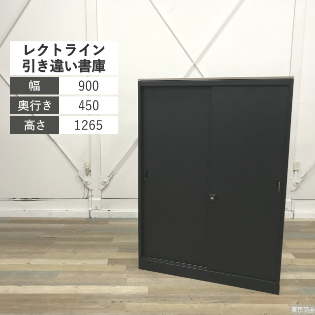 オカムラ 3枚引き違い書庫 レクトライン シリンダー錠 W900 ライトスモーク 4H453Y-Z13【※奥行400mmタイプ】