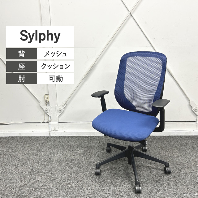 オカムラ オフィスチェア シルフィー ローバック 可動肘 ミディアムブルー ブラック ポリッシュ